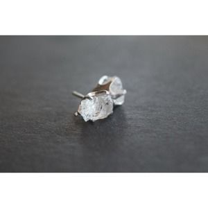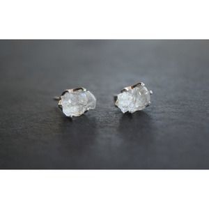 Sterling silver stud earrings, alternative diamond, uncut natural gemsto…