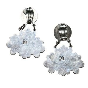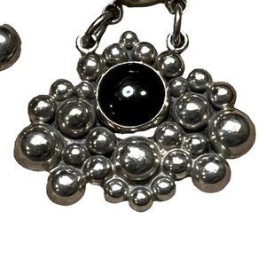 Sterling silver vintage 80’s clip on drop earrings with onyx center