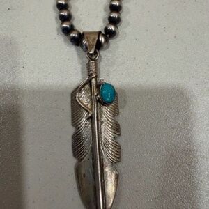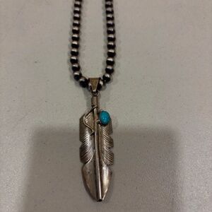 Sterling & turquoise feather pendant signed CC, pendant only