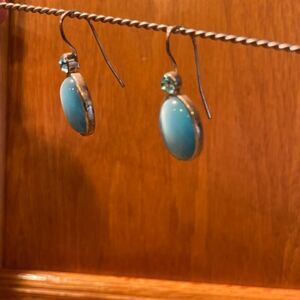 Bought on vacation years ago by my mom. Gorgeous blue tigers eye type stone. Sterling silver. Really stunning on and catches all kinds of light! Not too big and not too small. Really beautiful!