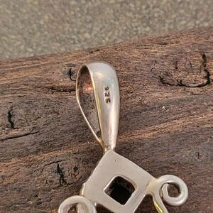 Sterling contemporary Bali style black druzy stone pendant with black faceted accents stones.