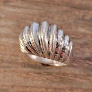 Sterling silver ribbed contemporary dome statement ring. The ring has a nice weight and feel.