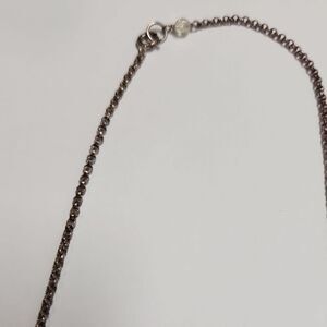 This sterling silver necklace features a stunning leaf pendant adorned with delicate beads and pearls. Perfect for adding a touch of sophistication to any outfit.