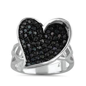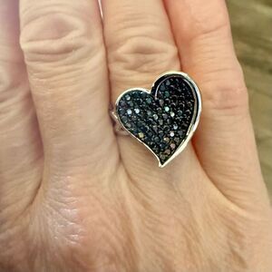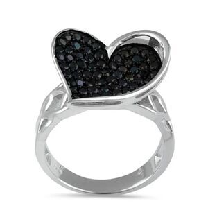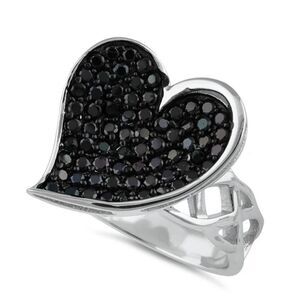 Make a bold yet romantic statement with this exquisite Sterling Silver Fine Ring, featuring a heart-shaped centerpiece encrusted with shimmering black cubic zirconia stones. The rich contrast between the dark sparkle and polished silver creates a look that's both edgy and refined.