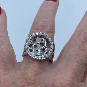 Sterling Silver CZ Wide Band Art Deco Ring Size 10