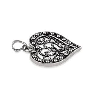 Add a touch of vintage charm to any outfit with this exquisitely crafted Sterling Silver Filigree Heart Pendant. Featuring delicate scrollwork and a graceful openwork design, the pendant showcases classic elegance with a romantic silhouette. The high-polish sterling silver gleams brilliantly, while the filigree pattern adds a layer of timeless artistry. Perfect for anniversaries, Valentine’s Day, or everyday wear, this pendant speaks of love with a sophisticated flair. Pair it with your favorite chain to create a signature piece that's both graceful and unforgettable.