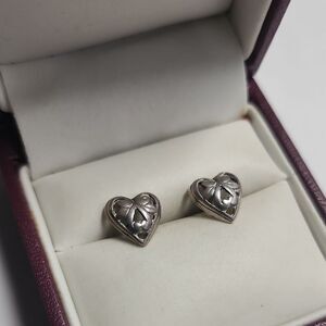 Elegant sterling silver heart stud earrings perfect for any occasion. Add a touch of sophistication to your look.