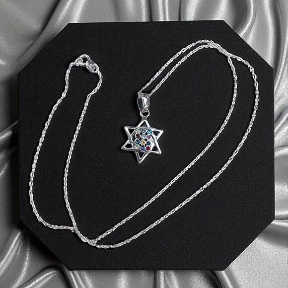 Sterling Silver Hoshen Star of David Multi-Colored CZ Necklace