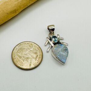 Sterling Silver Natural Rainbow Moonstone Rough & Blue Topaz Pendant