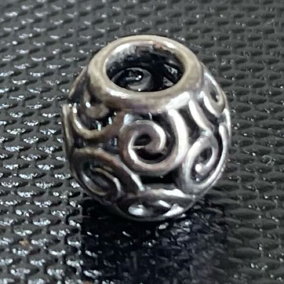 Sterling Silver Pandora Barrel with swirl design.