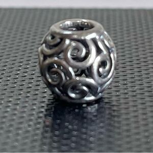 Sterling silver Pandora Barrel with swirl design.