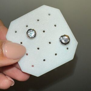 Chic iridescent jewelry box featuring dazzling stud earrings. Ideal for any occasion.