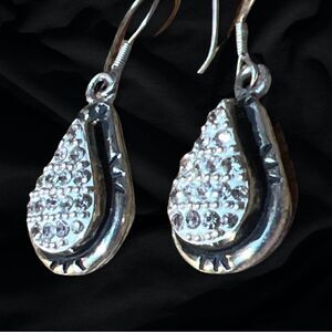 Sterling Silver Tear Drop Pave Diamond Earrings Stamped!