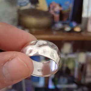 Not sure of exact size. i think its an 8. Elegant silver ring with a unique textured design. Perfect for any occasion!