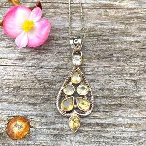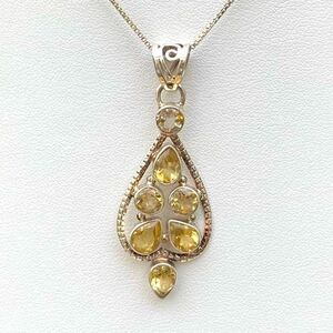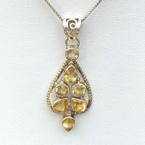 Sterling Silver Yellow Citrine Tear Drop Pendant Necklace. EUC!