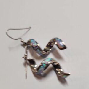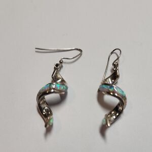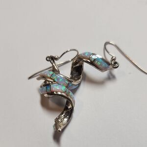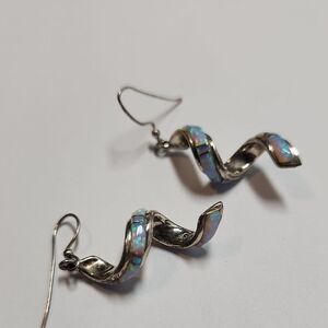 Sterling Silver and Opal Earrings Ribbon Swirl Earrings Native American