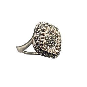 Sterling Silver 925 Marcasite black spinel ring open work weave size 7