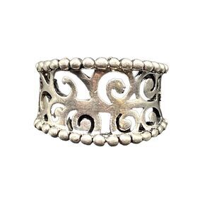 Sterling Silver 925 Open Scroll Band Ring dotted detail size 7