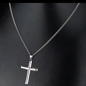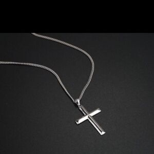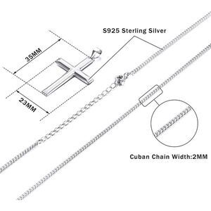 Sterling Silver Beveled Cross Cuban Chain Necklace
