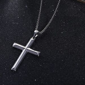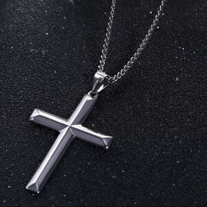 Beautiful Simple Solid Beveled Edge Cross Necklace