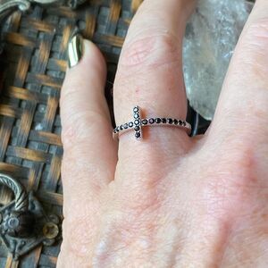 Sterling silver Black Cz Sideways Cross Ring Size 8,910