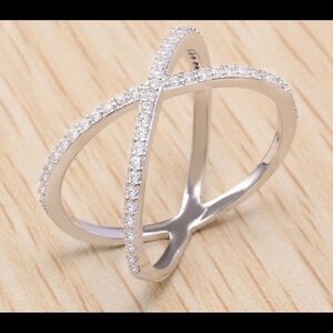 AAA Simulated Diamonds & 925 Sterling Silver X Ring