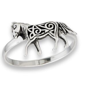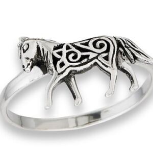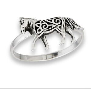Sterling silver horse with filigree design on horse body attached to sterling silver bad.