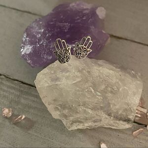 Sterling Silver Hamsa Stud Filigree Earrings