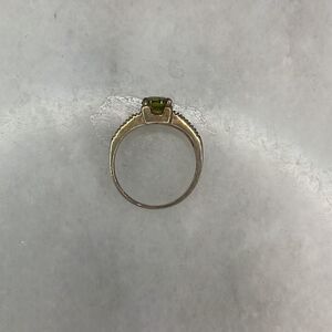 Sterling silver ring with a beautiful peridot colored round center stone. Marcasite down either side of the ring. Four prongs secure the center stone. Sparkles in the light. Sterling Silver 925 engraved inside the band. Photos are the best description of this pretty ring, zoom to see the detailed condition. Size - 5 3/4. Feel free to ask questions and make an offer.