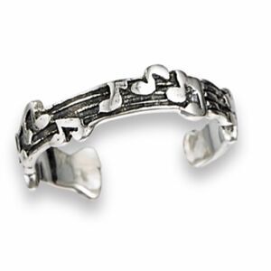 A music is placed in the center of this sterling silver adjustable toe ring.