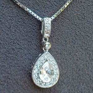 Sterling silver pear clear cubic zirconia necklace.