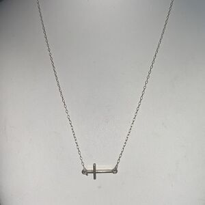 A fresh and fashionable way to display your love for your faith with this sideways cross necklace perfect for any occasion that's a must have. This design is handcrafted with sterling silver, comes on an 18" adjustable cable chain and 1/4" H x 7/16"