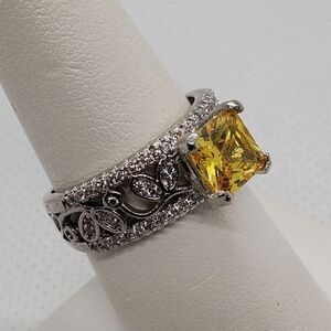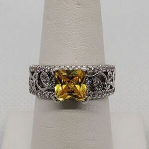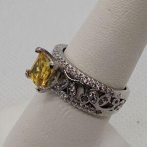 Sterling Silver Yellow & Clear Stone Ring (8)