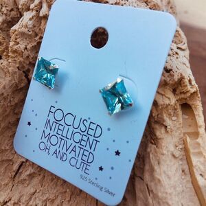 Sterling crystal square blue earrings