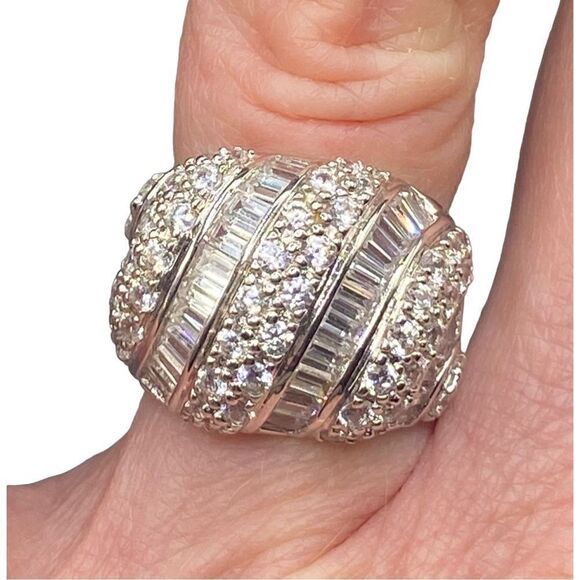 Sterling silver 925 baguette and alternating round CZ rows wave ring size 5