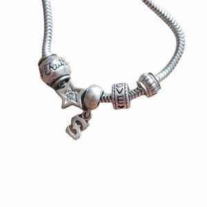 Bracelet comes with 5 charms! Faith, Love, The letter S, Star with Cz clear diamond stone and a detailed simple charm.