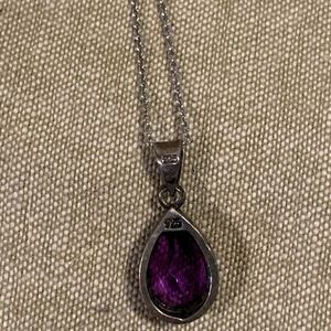 Sterling silver amethyst tear drop pendant with 18” sterling chain marked