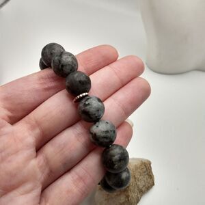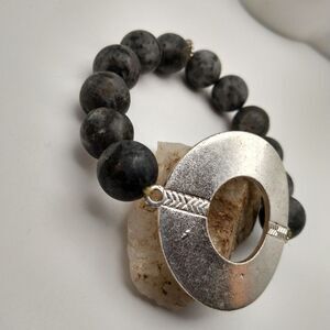 Sterling silver matte grey jasper stone bracelet stretch detailing unisex