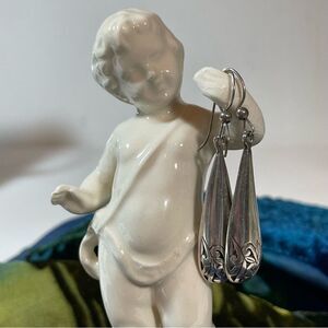 Classic and beautiful sterling silver drops with a botanical design at the drippy part of the drop.