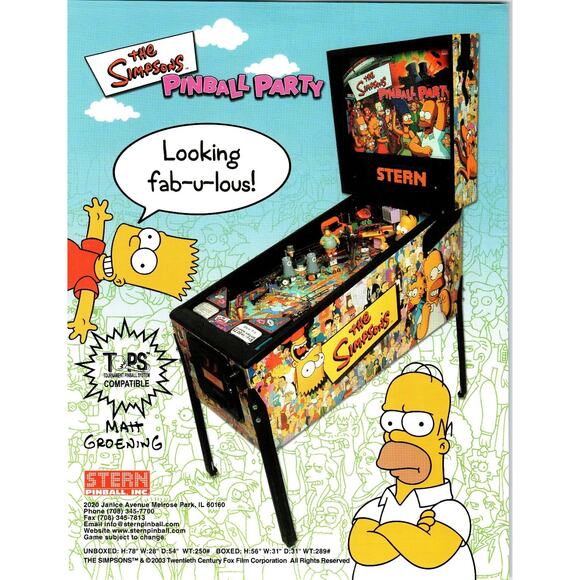 Stern The Simpsons Pinball Party Arcade Machine FLYER Original Vintage Art