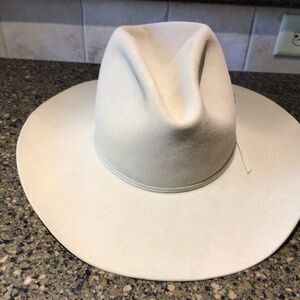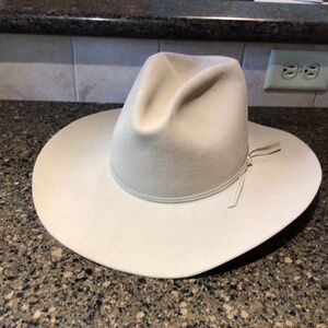 Used, good condition but with 3 tiny partial holes on crown. Size 7 1/2