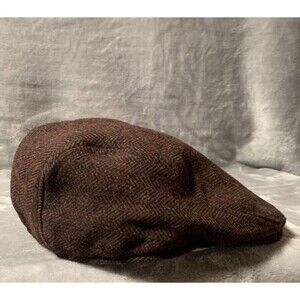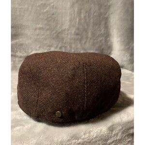 Classic Stetson flat cap. Rich brown herringbone pattern. Timeless style.