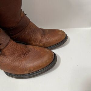 Gently worn women's size 6.5 Stetson Brown Leather Tall Harness Riding Boots. Please review all photos for any signs of wear-pictured as is. Disclaimer: Any items with any wear/staining has not been treated, and unsure of ability to remove/treat condition. Comes from a smoke free home, bundle with other items to save & minimize shipping cost.