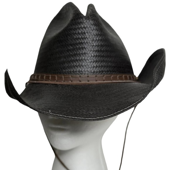 Stetson Cowboy Hat Dark Brown Braided Leather Hat Band Chin Strap #B07