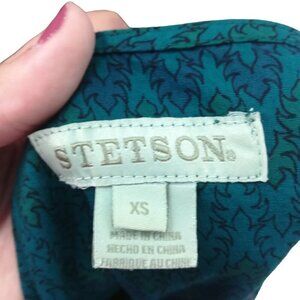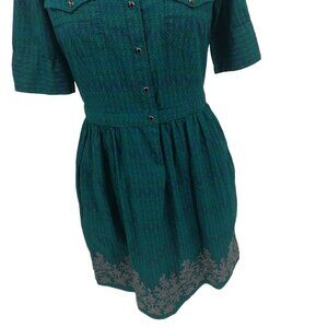 Stetson Embroidered Pearl Snap Short Sleeve A Line Dress Size XS Cotton Blue