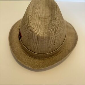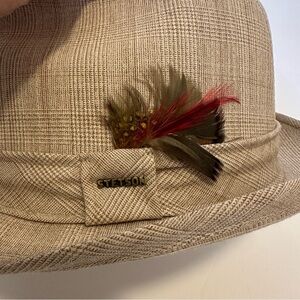 Stetson Fedora Plaid Light Brown with Feather Size 7 3/8