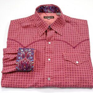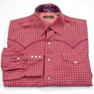Stetson L Men's Western Pearl Snap Paisley Flip Cuff Geometric Long Sleeve