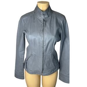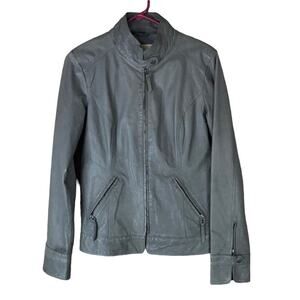 Stetson Leather Moto Front Zip Jacket Gray Size Medium