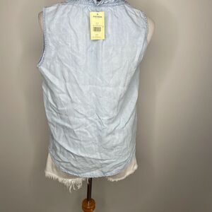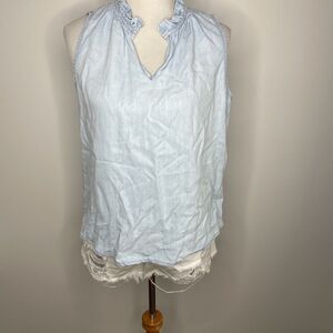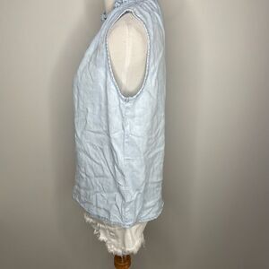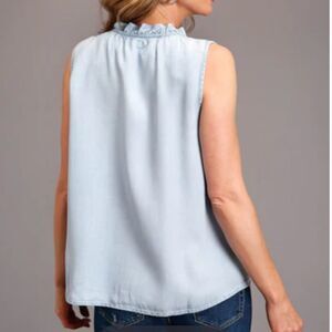 Stetson- Light Blue Denim Ruffle V-Neck Blouse
