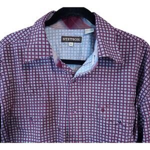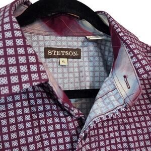 Stetson Men's Geometric Snap Front Shirt Wine Colored size XL